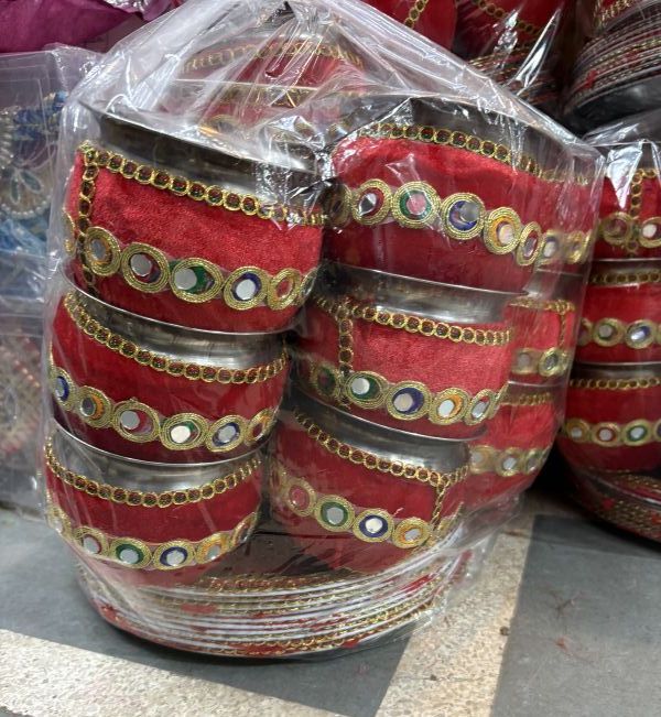 The complete set includes a Rumal (decorative cloth), Thali (plate), Garvi (pot), and Chhanni (sieve) — all made from lightweight aluminium and steel for easy handling and durability. Designed for modern homes with a traditional heart, it’s easy to carry, convenient to store, and ideal for gifting or festive decor or use.